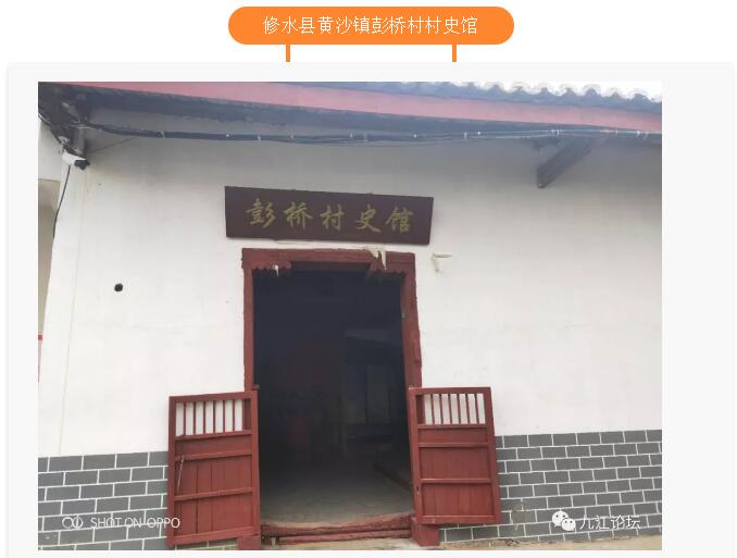 彭桥村史馆和黄沙桥战役纪念馆设立在“彭桥村抗战文化广场”南侧,占地面积分别为100㎡和80㎡,馆内主要有文字展示、乡村农耕古器具展示、墙壁油画等方式展示。展示的内容有彭桥村历史以来地下地表蕴藏着较为丰富的历史信息。因被考证这里是新石器晚期人类生产生活的工具拥有地(图片展示),有据《宁州志、丘墓、石彦诚墓条目》,《义宁州志、人物志》及《浙江金华府志》记载的廉官石彦诚寝地;有村民耕读传家、拥军爱国、文明敬业、舍己为人的学习内容;还有抗日战场先烈们英勇杀敌的故事,传承和教育爱国文化;或见诸于史册,或传之于口碑,代代相传,绵延不断。