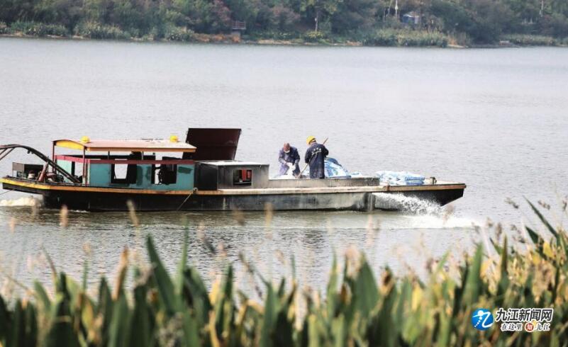 经过综合治理后“两湖”水质明显改善。11月4日,记者看到,湖边走湖者排成了队。经常走湖的王师傅说,这里的水质现在明显好多了,走湖时的心情都变好了。图为工人在往湖中喷洒石灰浆消毒。