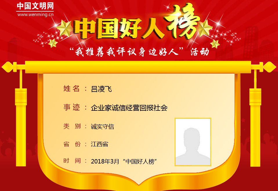 2018年,九江市共有四位同志荣登榜单,他们是:鲁信、涂容青、吕凌飞、齐丽。“文明九江”微信公众号将陆续推出他们的事迹报道,敬请关注!让我们向好人学习!为好人点赞!