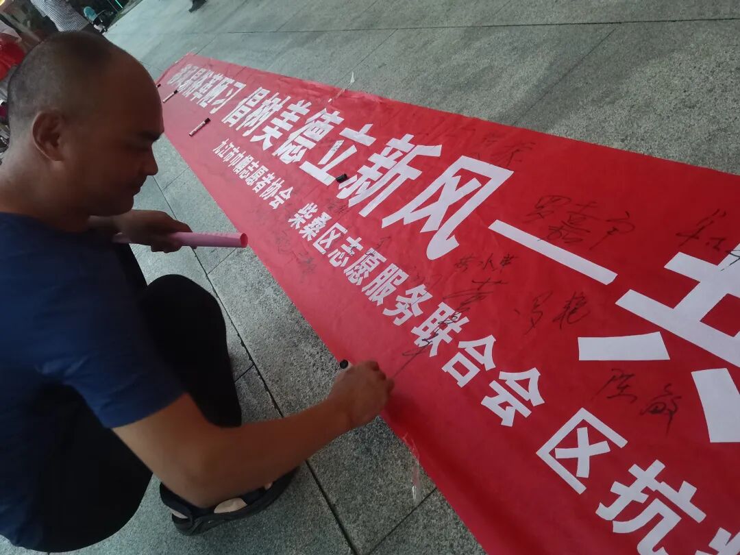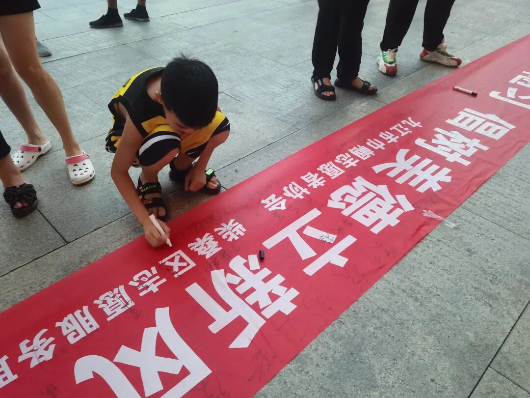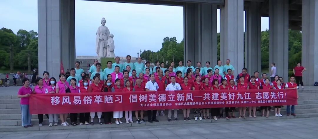在场的100多名志愿者和市民把最深沉的感受和支持落定在印有“移风易俗革陋习 倡树美德立新风--共建共享美好九江,志愿者先行”的红色大条幅上,立志“树美德、立新风”从我做起,争做文明使者好榜样。