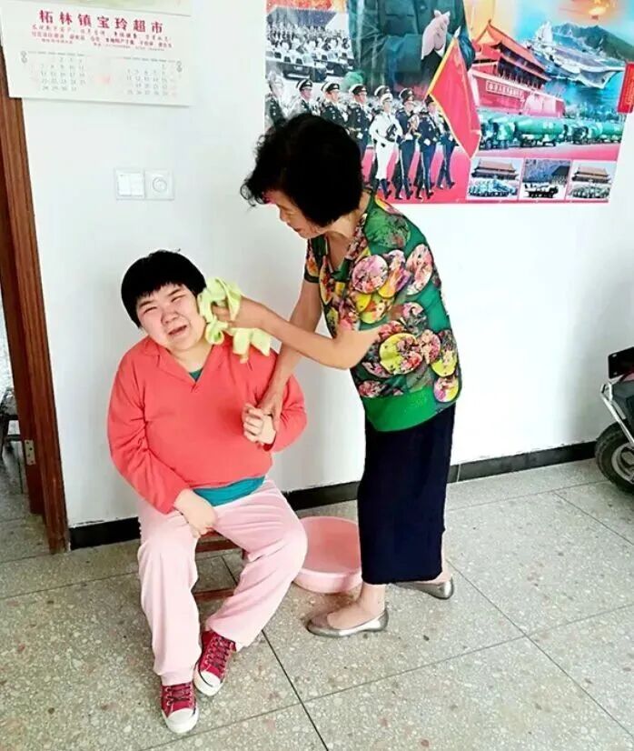 林金凤为不能自理的养女蔡莉凡洗脸