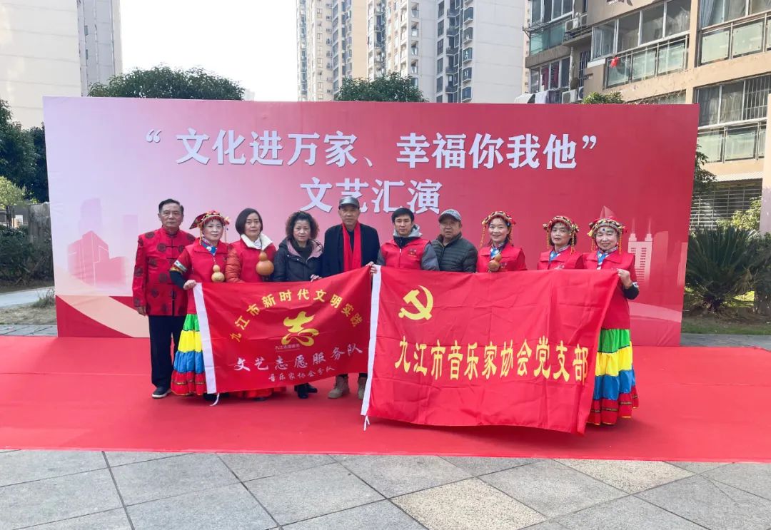 为认真贯彻落实省、市文联关于 2023 年元旦春节期间开展新时代文明实践文艺志愿服务活动的精神,市音协党支部组织党小组长及葫芦丝巴乌、管乐打击乐和二胡学会的党员与入党积极分子,分别于1月10日、2月16日走进浔阳区浔阳楼和城市花园,社区开展新年送祝福暨新时代文明实践文艺志愿演出活动。