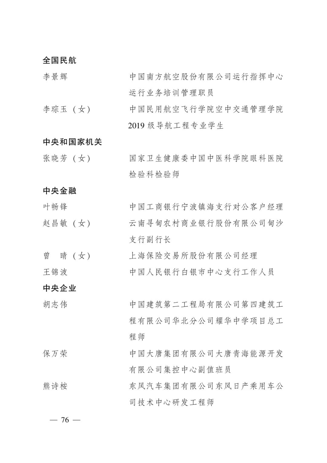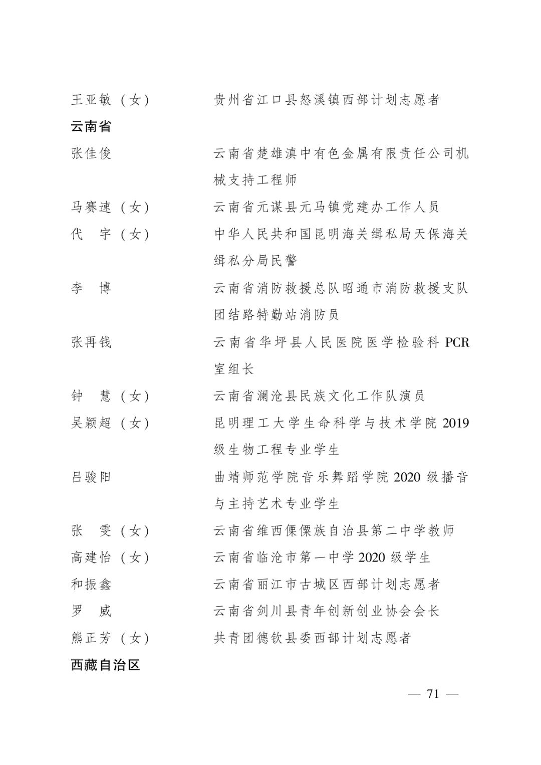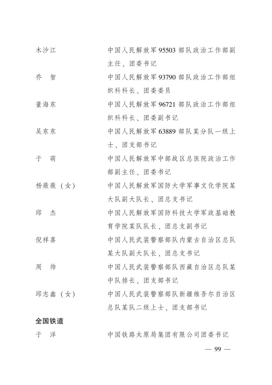 近年来,各级团组织和广大团员、团干部凝聚在党的旗帜下,牢记初心使命,充分发挥生力军和突击队作用,涌现出一大批先进典型。他们在乡村振兴一线摸爬滚打,在实践磨砺中长才干、壮筋骨;他们在科技攻关岗位奋勇攀登,在日益激烈的国际竞争中成为创新创业的有生力量;他们在疫情防控、抢险救灾等急难险重任务中冲锋在前,在祖国和人民需要的时刻挺身而出;他们在保卫祖国哨位威武守护,用实际行动践行“清澈的爱、只为中国”……他们在各行各业、各条战线上努力拼搏、奋勇争先,为全团树立了标杆榜样。受表彰的对象中,81个集体、151名个人在疫情防控中表现突出,62个集体和个人在科技攻关、创新创造中挺膺担当,19名驻村第一书记、西部计划志愿者、近百个集体和个人在乡村振兴和基层治理一线挥洒汗水,展现出自信自强、刚健有为的精神风貌。