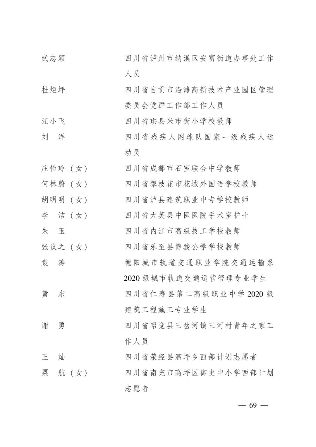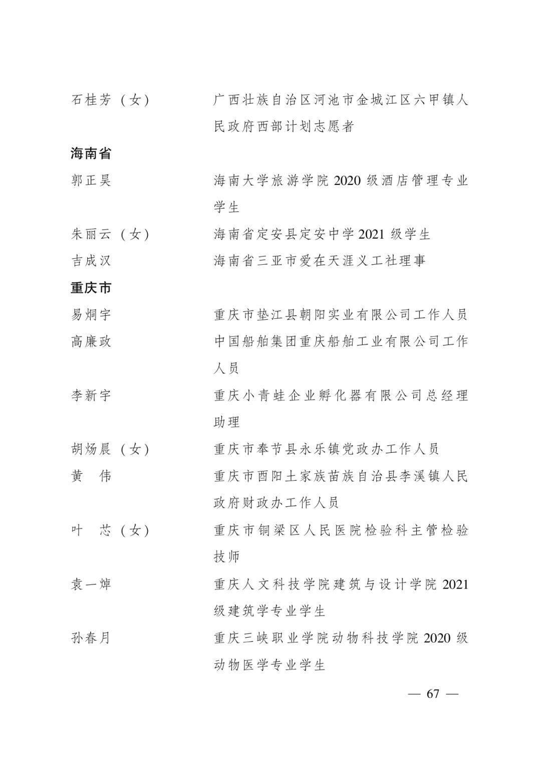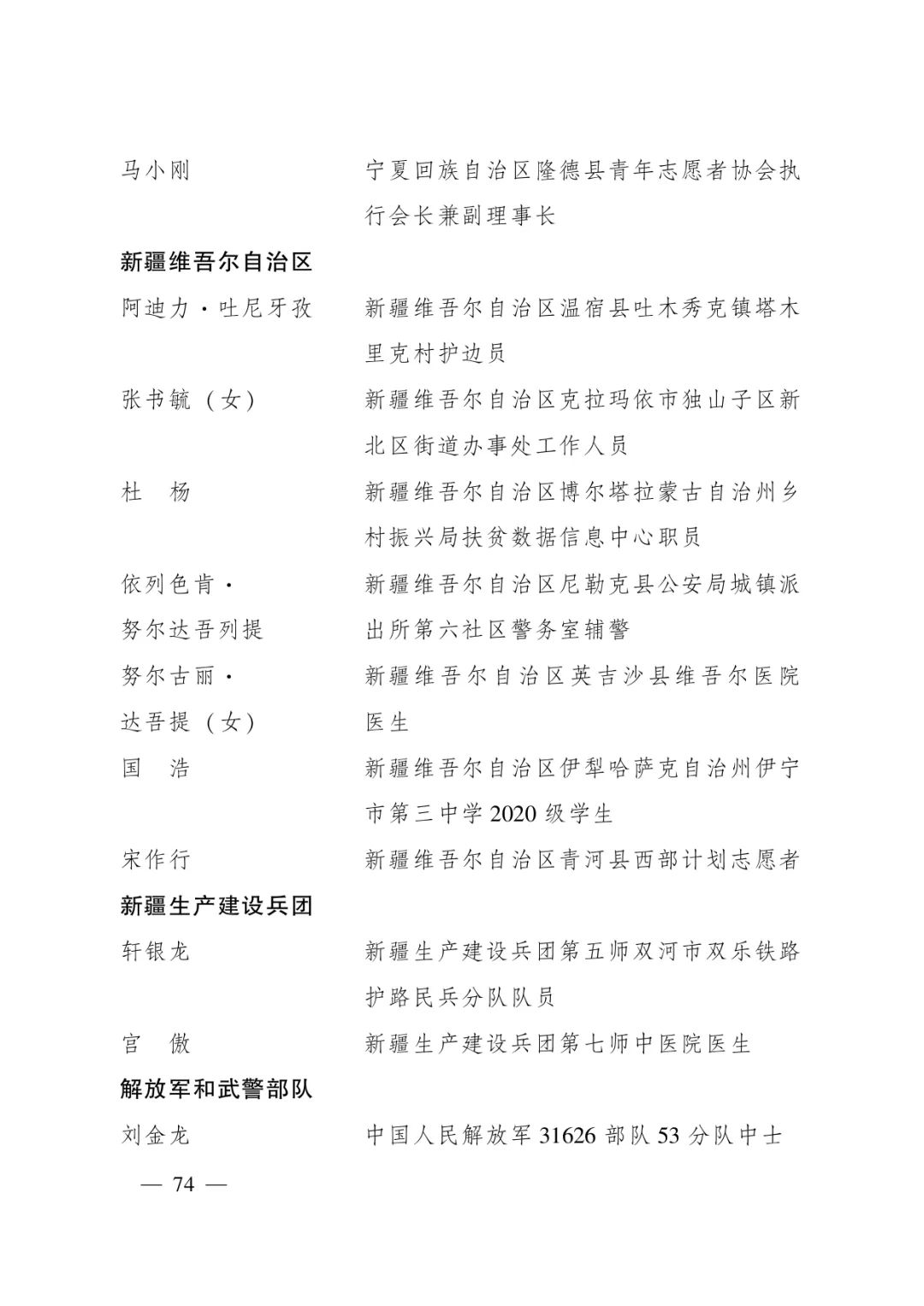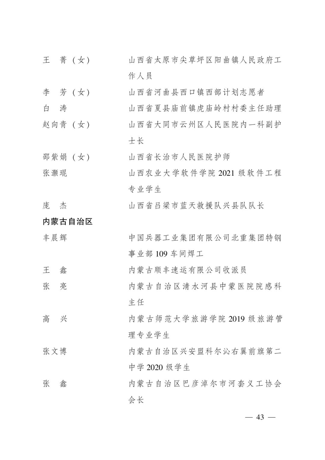近年来,各级团组织和广大团员、团干部凝聚在党的旗帜下,牢记初心使命,充分发挥生力军和突击队作用,涌现出一大批先进典型。他们在乡村振兴一线摸爬滚打,在实践磨砺中长才干、壮筋骨;他们在科技攻关岗位奋勇攀登,在日益激烈的国际竞争中成为创新创业的有生力量;他们在疫情防控、抢险救灾等急难险重任务中冲锋在前,在祖国和人民需要的时刻挺身而出;他们在保卫祖国哨位威武守护,用实际行动践行“清澈的爱、只为中国”……他们在各行各业、各条战线上努力拼搏、奋勇争先,为全团树立了标杆榜样。受表彰的对象中,81个集体、151名个人在疫情防控中表现突出,62个集体和个人在科技攻关、创新创造中挺膺担当,19名驻村第一书记、西部计划志愿者、近百个集体和个人在乡村振兴和基层治理一线挥洒汗水,展现出自信自强、刚健有为的精神风貌。