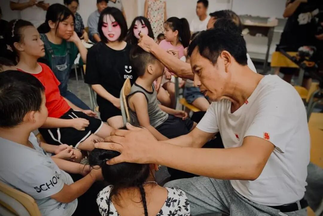 节日前夕,在共青城市苏家垱大桥村小学,国家级非遗西河戏传承人陶桂水带着一群孩子们,全套行头,浓墨重彩,唱起了《大美共青》。稚嫩的戏腔,天真的神情,让人听出了生活的美妙。