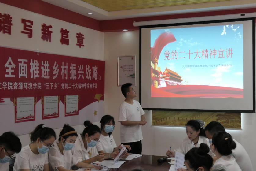 为深入学习贯彻习近平新时代中国特色社会主义思想,贯彻落实“习近平总书记与大学生在一起”学习分享活动要求,深入落实“时代新人铸魂工程”部署要求,扎实落实“大思政课”综合改革试验区建设要求,推动优质资源下沉新时代文明实践中心(所、站),引导广大学生在切身体验新时代伟大变革、投身新时代火热实践中,进一步深化对习近平新时代中国特色社会主义思想的学思践悟,努力成长为有理想、敢担当、能吃苦、肯奋斗的新时代青年。近日,九江市各地积极对接开展“强国有我、青春有为”暑期社会实践活动暨2023年“万名大学生进千站”文明实践志愿服务行动。