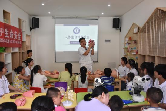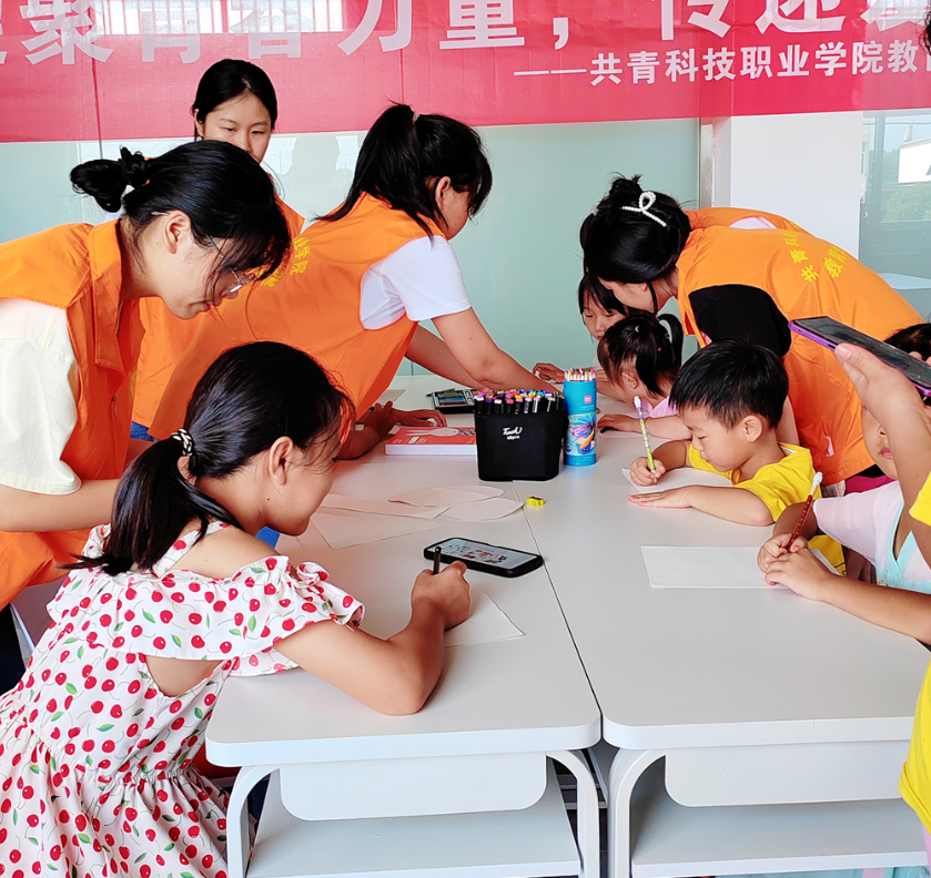 助力乡村教育,贡献青春力量。大学生志愿者依托燕坊村新时代文明实践站为燕坊村留守儿童设计了情感关怀、亲情陪伴、自护教育、励志教育、红色教育等主题活动。通过开展绘画、包饺子、趣味游戏、唱红歌等活动不仅丰富孩子们的假期生活,还把专业所学融入支教助学中,为留守儿童献出自己的一份爱心,彰显共科学子的责任与担当。