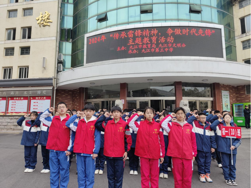 3月11日,九江三中在升旗仪式上,开展以“传承雷锋精神,争做时代先锋”为主题的教育活动,旨在深入学习和传承雷锋精神,激发师生们争做新时代的先锋模范,为社会贡献自己的力量。