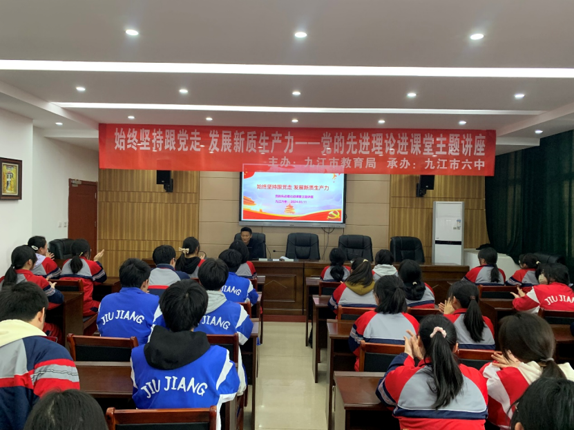 3月11日,九江市六中开展《始终坚持跟党走 发展新质生产力》主题讲座,为学生搭建更贴近实际的学习平台。