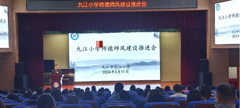 3月11日,九江小学分别在两校区召开师德师风建设推进会,要求全体教职工要树立底线意识,遵守职业道德规范,不断涵养师德;要认真自查整改,解决突出问题,全面提升师德师风建设水平。