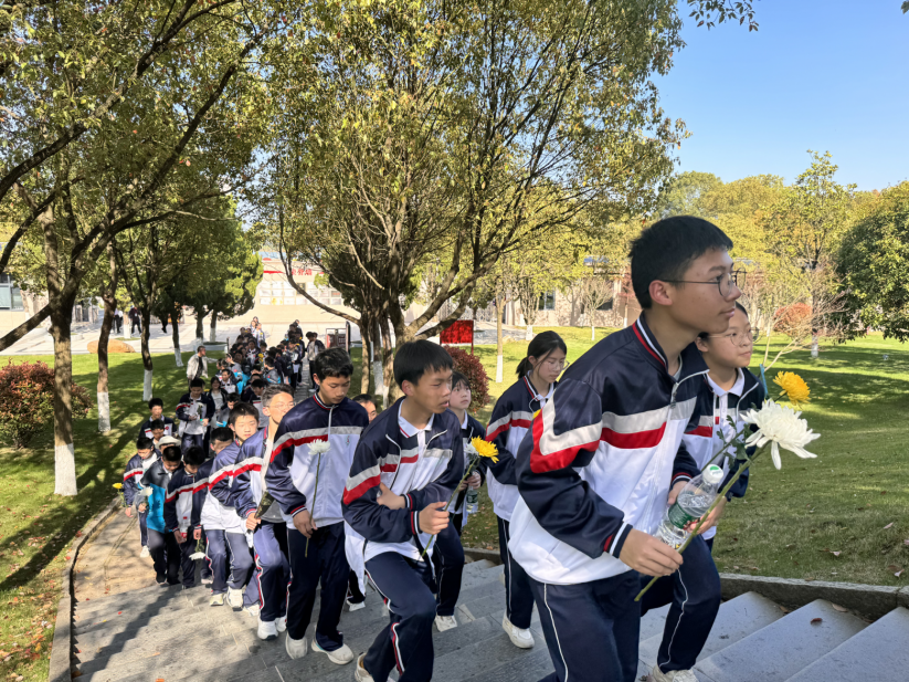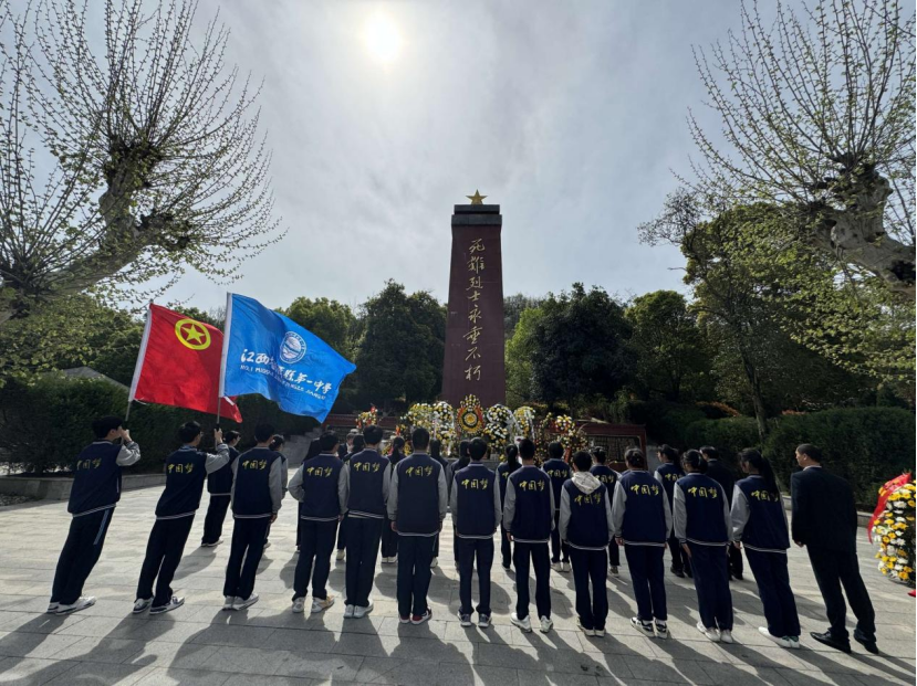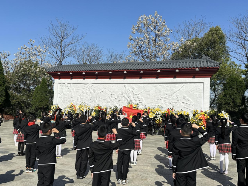 4月1日,九江市田家炳实验中学组织学生到南山公园烈士陵园开展清明祭英烈活动。