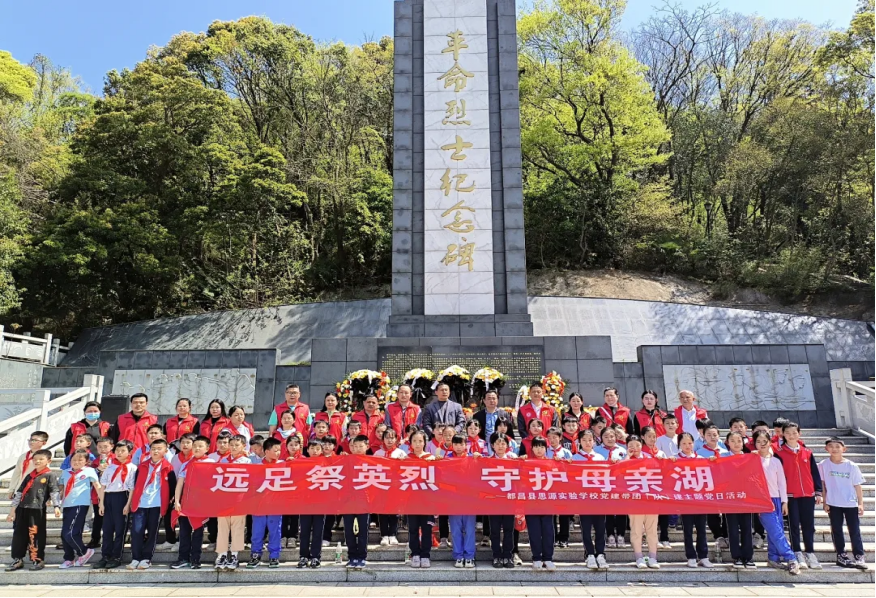 清明节前夕,都昌县思源实验学校以党建带团(队)建,开展“远足祭英烈 守护母亲湖”为主题的清明祭扫系列主题党日活动。学校全体党员、团(队)干部和学生代表及部分家长志愿者参与活动。