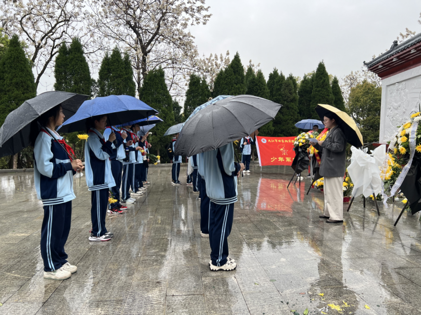 3月28日,九江外国语学校组织学生团员赴南山公园祭奠革命烈士。