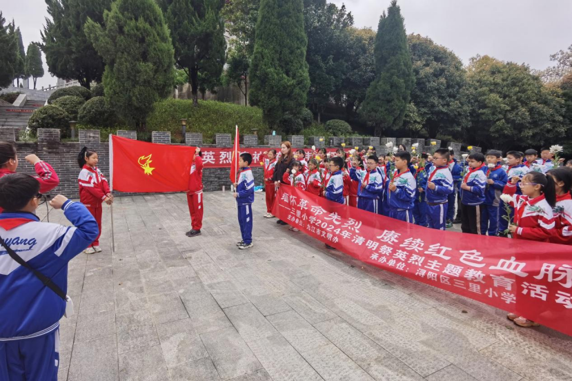 3月28日,浔阳区三里小学组织少先队员们到南山公园烈士陵园,开展“缅怀革命先烈 赓续红色血脉”清明节祭扫活动。