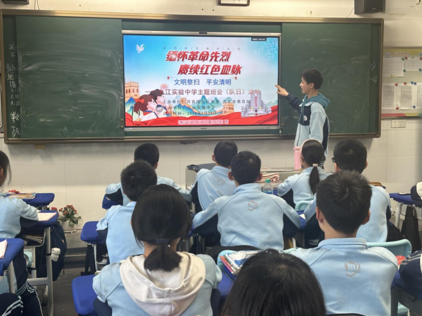 4月1日,九江实验中学举行“缅怀革命先烈 赓续红色血脉”主题升旗仪式,组织各班开展“缅怀革命先烈 赓续红色血脉”主题班会。