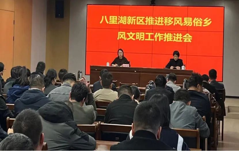 为推进移风易俗工作,3月25日,八里湖新区移风易俗乡风文明工作推进会召开。会议传达学习了省、市相关文件精神,就2024年新区移风易俗文艺节目展演活动工作进行部署,并制定详细的实施方案和计划。