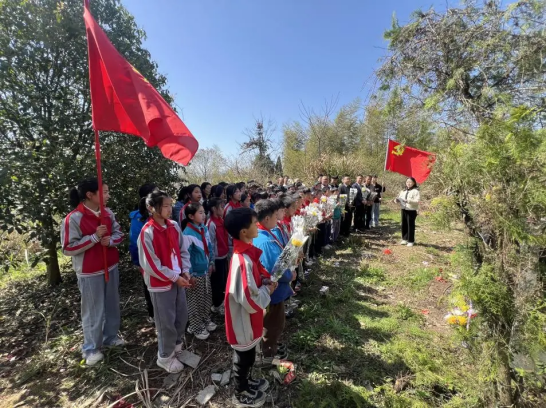 3月29日,彭泽县天红镇新时代文明实践所、天红镇关工委、天红中心完小和庙前村联合开展“清明祭英烈”祭扫活动。“为表达对烈士的敬意,请大家默哀三分钟。”镇村干部和学校师生纷纷肃立在柯子珍烈士墓前,静静感悟先烈不屈崇高的精神品质。默哀结束后,学生代表们对烈士墓进行祭扫,怀着崇高的敬意将菊花敬放在烈士墓前。