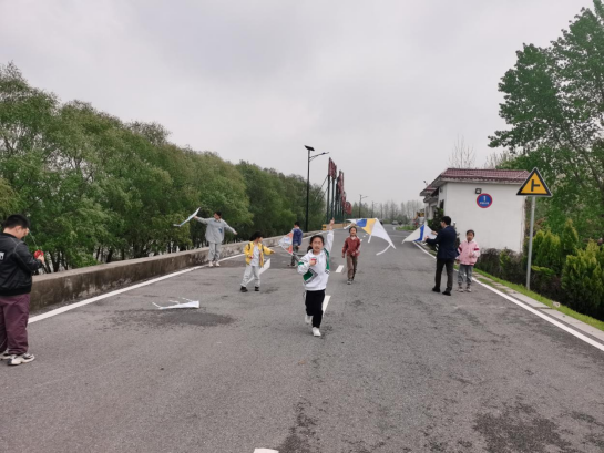 “春之风自下而上,纸鸢因之而起”。工作人员带着孩子们来到长江边的大坝上放风筝。他们相互合作,愉快地奔跑着,不一会天空中就飞起了五彩缤纷的风筝,像彩蝶在空中翩翩起舞,争奇斗艳。