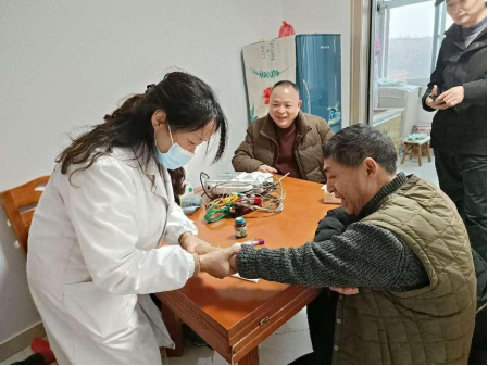 在彭泽县烈属梅茂生、永修县烈属胡传茂等人的家中,退役军人事务局工作人员带领参与义诊的医务人员给老人家开展健康检查。医务人员逐一询问烈属们的身体状况,仔细查看他们的日常用药、就诊病历等,并替每一位烈属建立健康档案。在都昌光荣院内,都昌县退役军人事务局邀请仁康医院医务人员为烈士家属进行义诊活动。