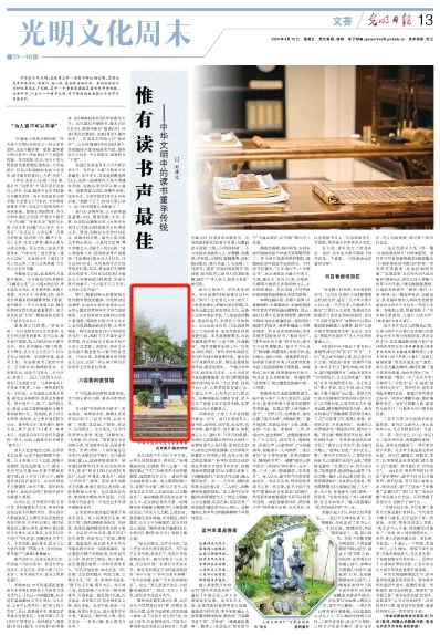 4月19日,《光明日报》13版稿件《惟有读书声最佳》,配发了九江市白鹿洞书院朱熹铜像照片。