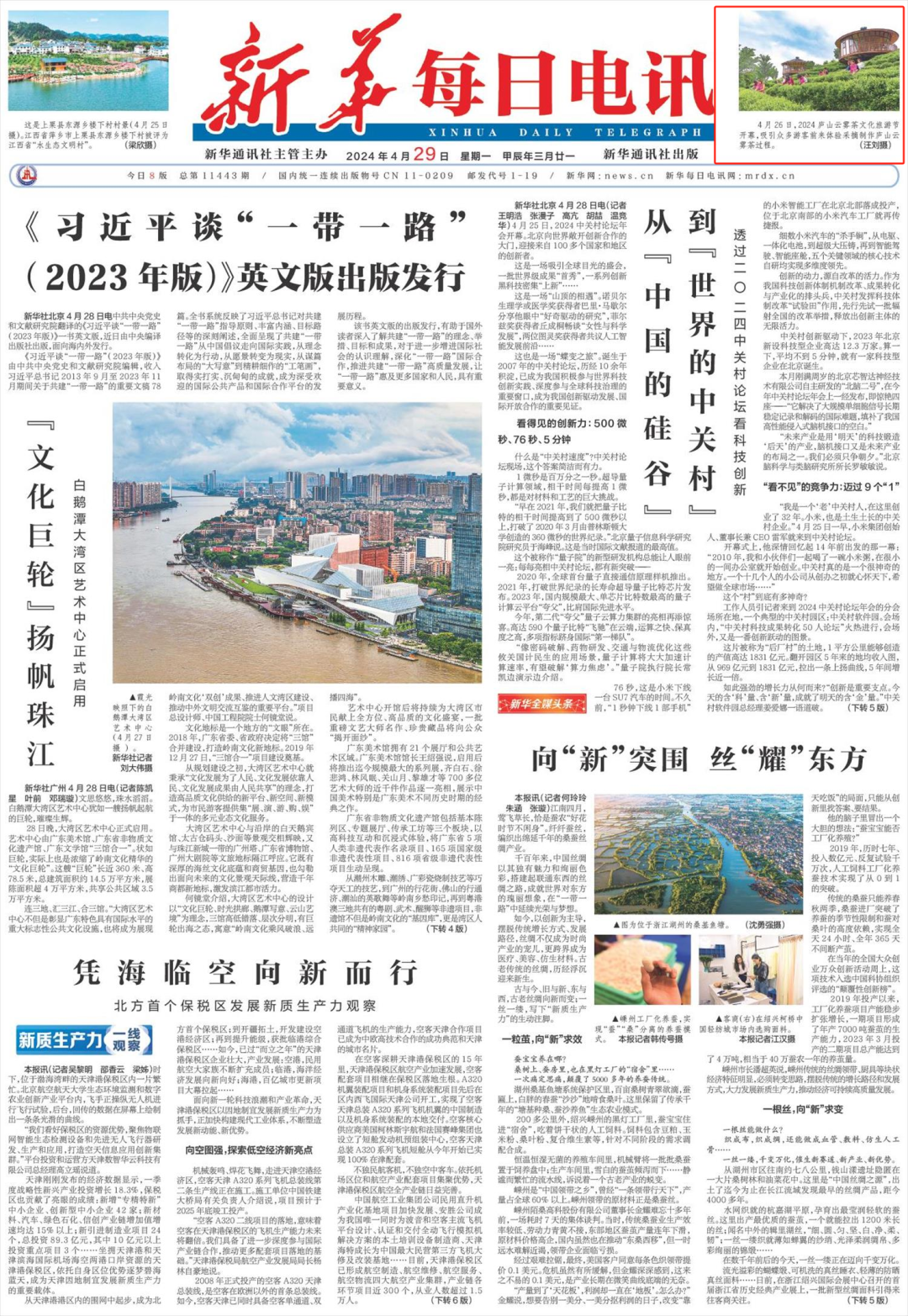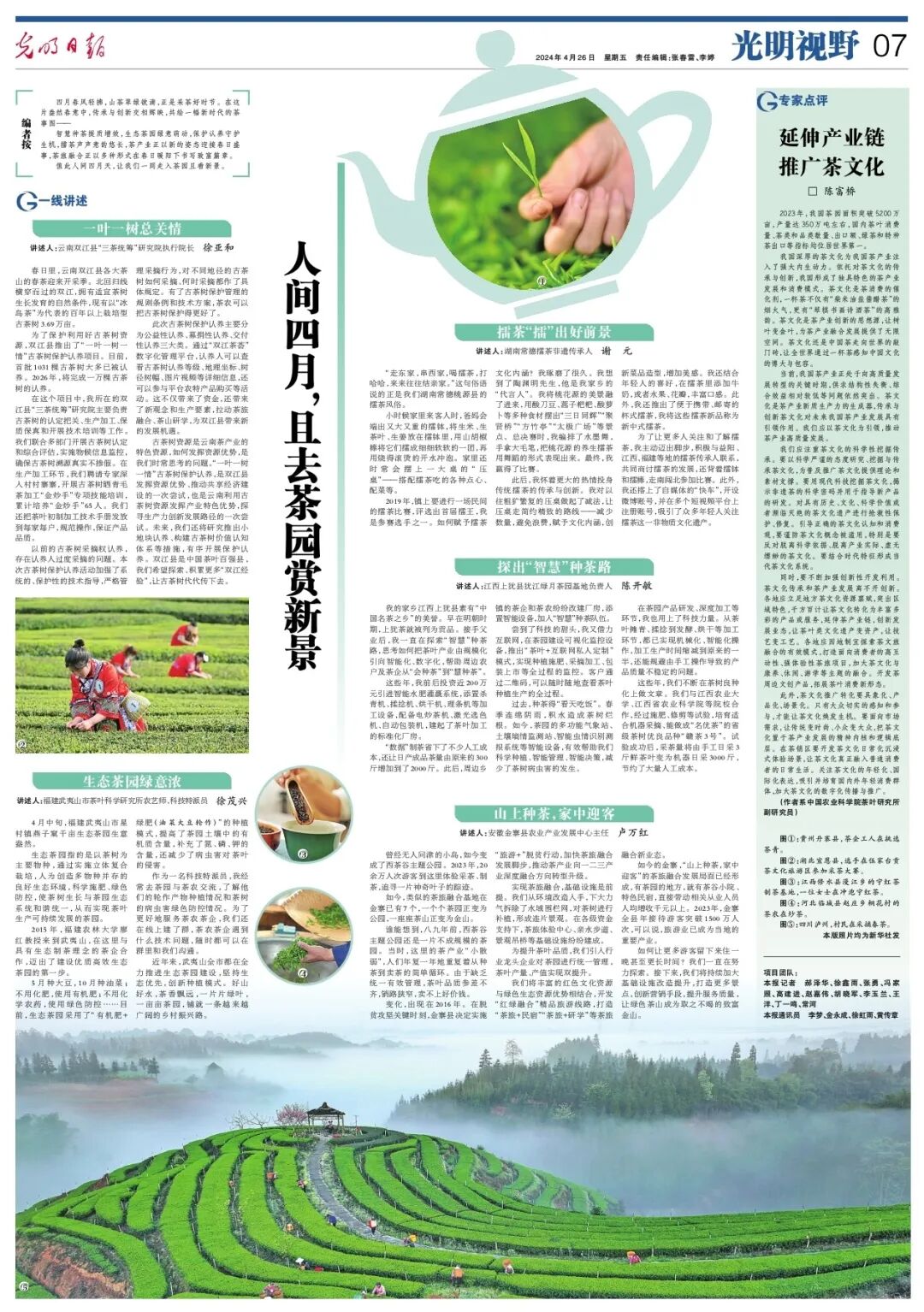4月26日,光明日报7版稿件《人间四月,且去茶园赏新景》,配发照片:修水县漫江乡的宁红茶制茶基地,一位女士在冲泡宁红茶。