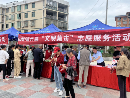 为进一步丰富新时代文明实践志愿服务活动载体,弘扬文明新风,近日,修水县白岭镇新时代文明实践所在白岭镇金凤广场开展“文明集市”志愿服务活动。活动内容丰富多彩,现场一片热闹场景。