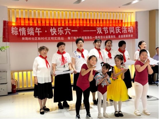 6月1日,新路岭社区新时代文明实践站联合南丁格尔志愿服务队、一路有您公益服务队、金益居家养老在新路岭社区日间照料中心开展“粽情端午·快乐六一”双节同庆活动。