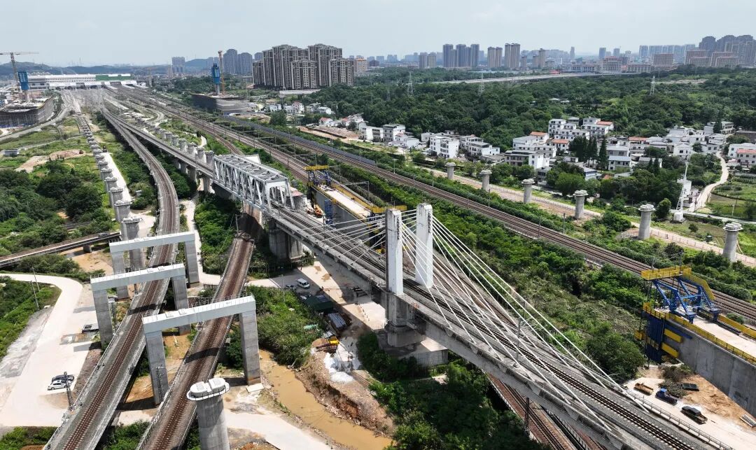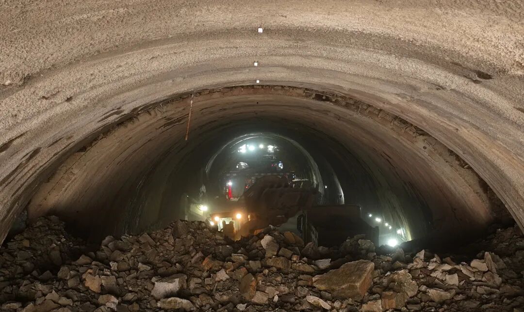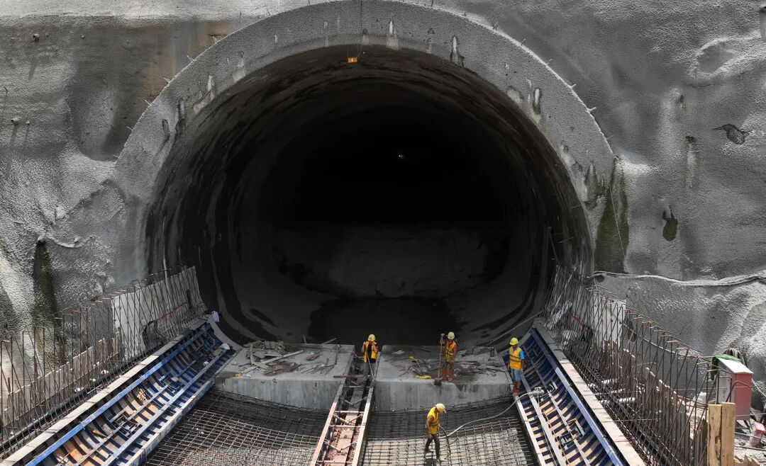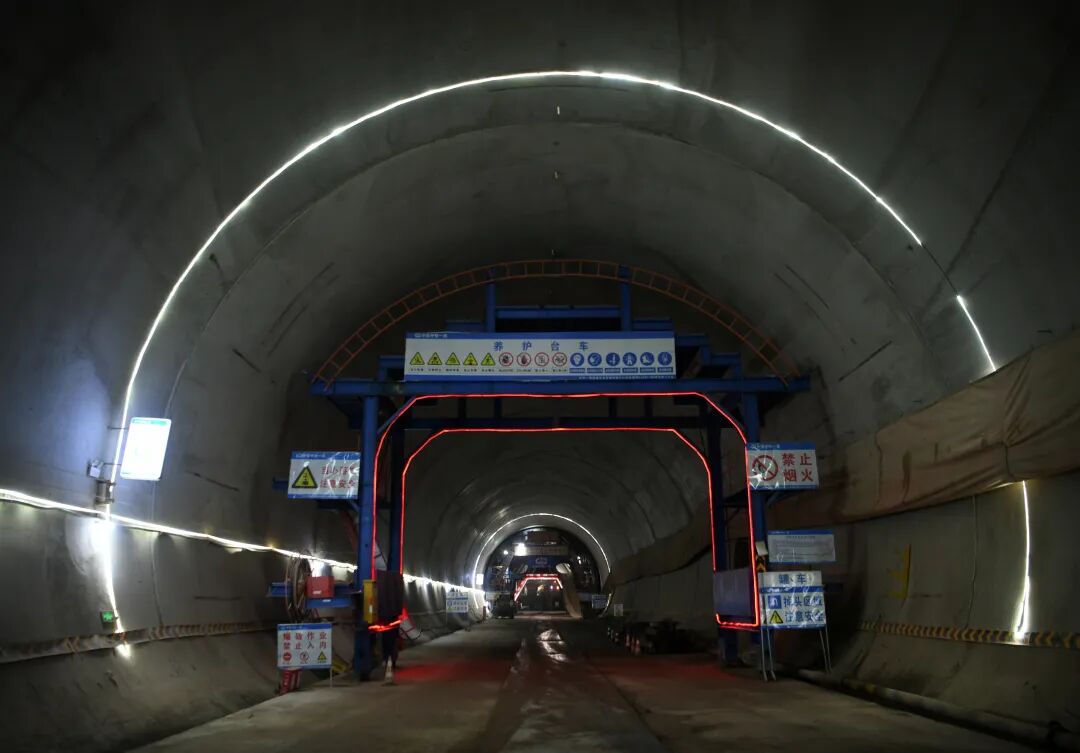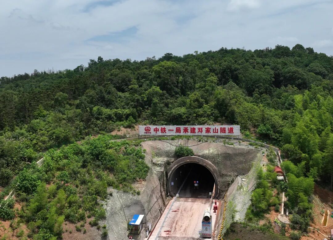 邓家山隧道为架梁线路上的关键节点,工期压力大,为确保隧道顺利贯通,自2023年6月1日邓家山隧道进洞施工以来,昌九城际铁路有限公司及施工单位采用三台阶(临时仰拱)法、三维激光扫描技术、湿喷机械手、多功能整体液压式衬砌台车、拱顶防脱空、电磁焊热熔机、自动喷淋养护台车等工艺、工装,严格控制循环进尺及安全步距,顺利穿越了浅埋段、软弱围岩段,克服了洞口偏压等难题;开挖过程中,按照长短超前地质预报、物探与钻探相结合的原则,加强地质灾害监测、预警工作,预判安全风险,确保隧道顺利实现贯通。