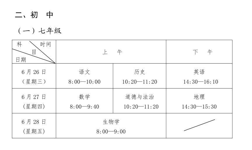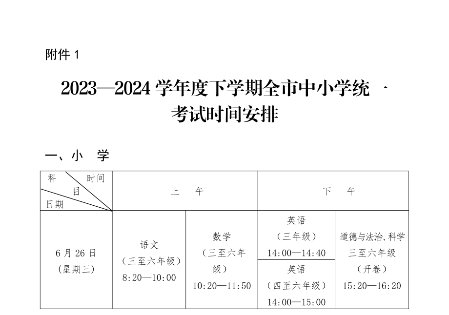 小学三至六年级、初中非毕业年级期末考试时间可安排在6月26日—28日举行。