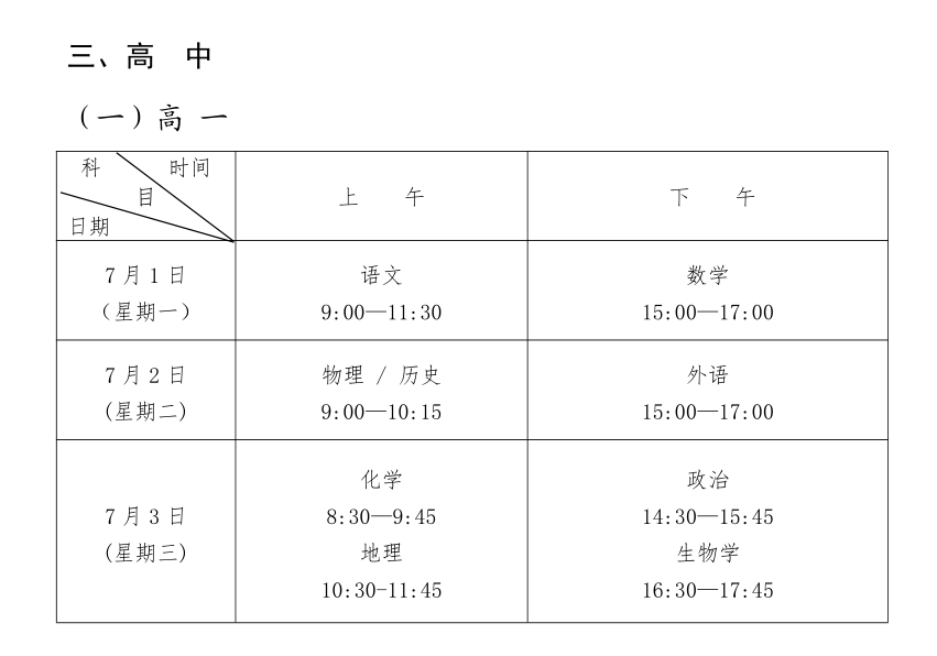 高中非毕业年级期末考试时间可安排在7月1日至3日举行。