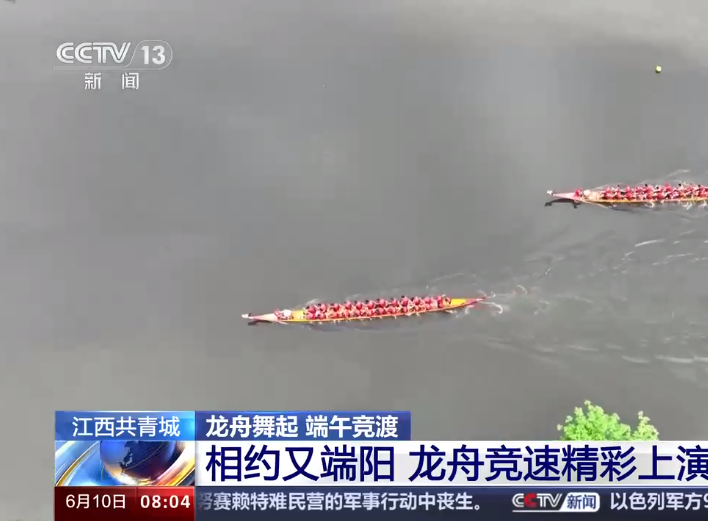 6月10日,央视《朝闻天下》栏目播出《龙舟舞起 端午竞渡 百舸争流迎端午 龙舟赛起飞桨逐》,报道共青城市端午期间龙舟赛精彩上演。