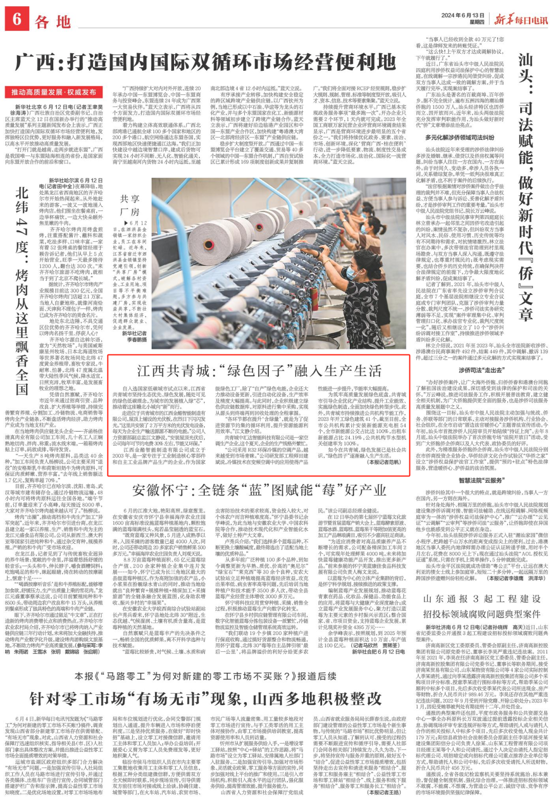 6月13日,《新华每日电讯》6版稿件《江西共青城:“绿色因子”融入生产生活》,单条报道了共青城市坚持生态优先、绿色发展,随处可见的绿色低碳理念,为城市的发展植入绿“芯”,推动着这座赣北小城向“新”而行。