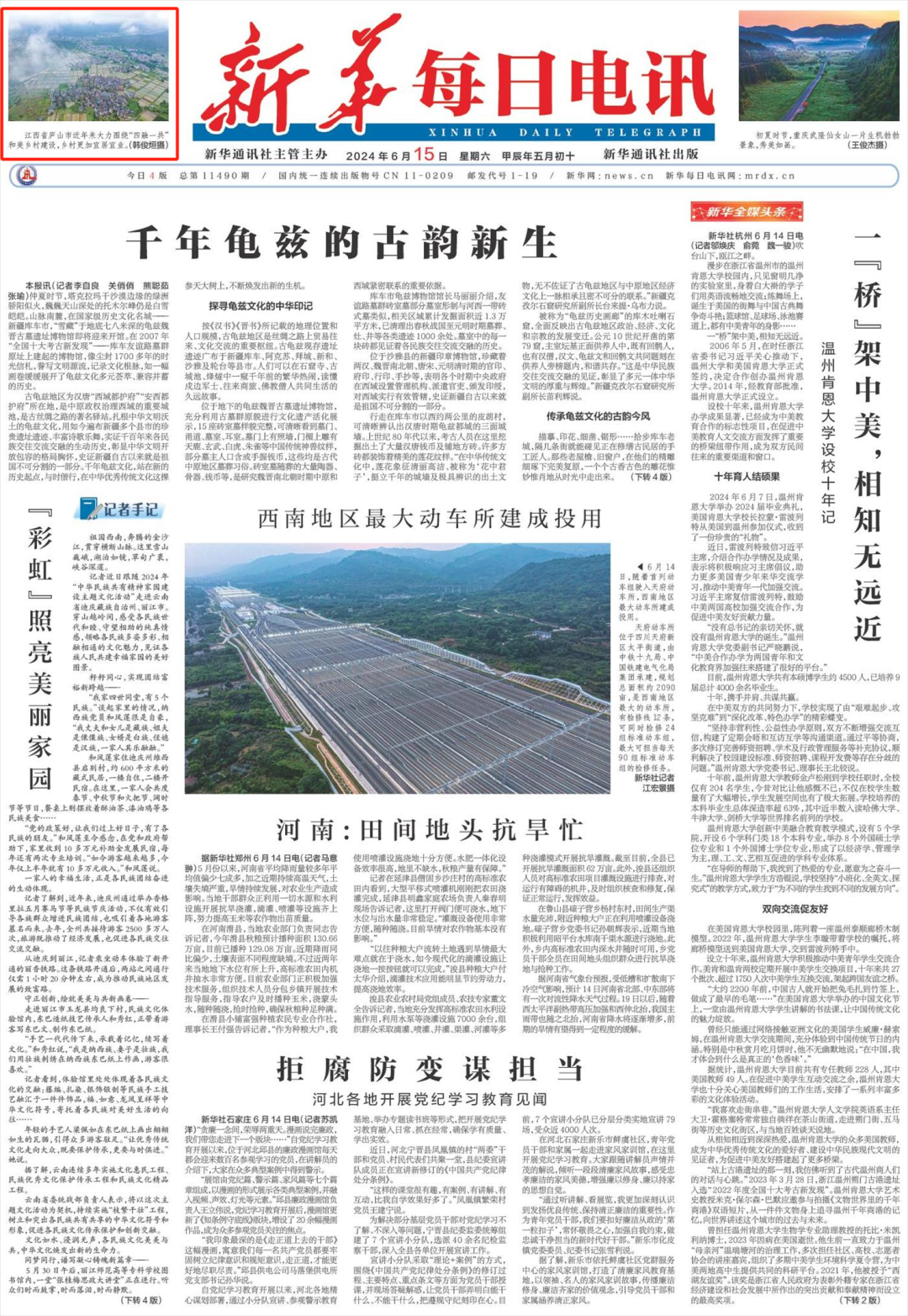 6月15日,《新华每日电讯》头版报眼位置刊发图片新闻,报道庐山市近年来大力围绕“四融一共”和美乡村建设,乡村更加宜居宜业。