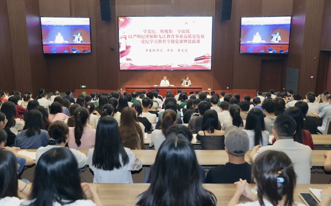 按照有关要求和市委党纪学习教育安排,7月3日上午,市委副书记、市长蒋文定来到江西财经职业学院,围绕“学党纪、明规矩、守底线 以严明纪律保障九江教育事业高质量发展”主题,讲党纪学习教育专题党课暨思政课。