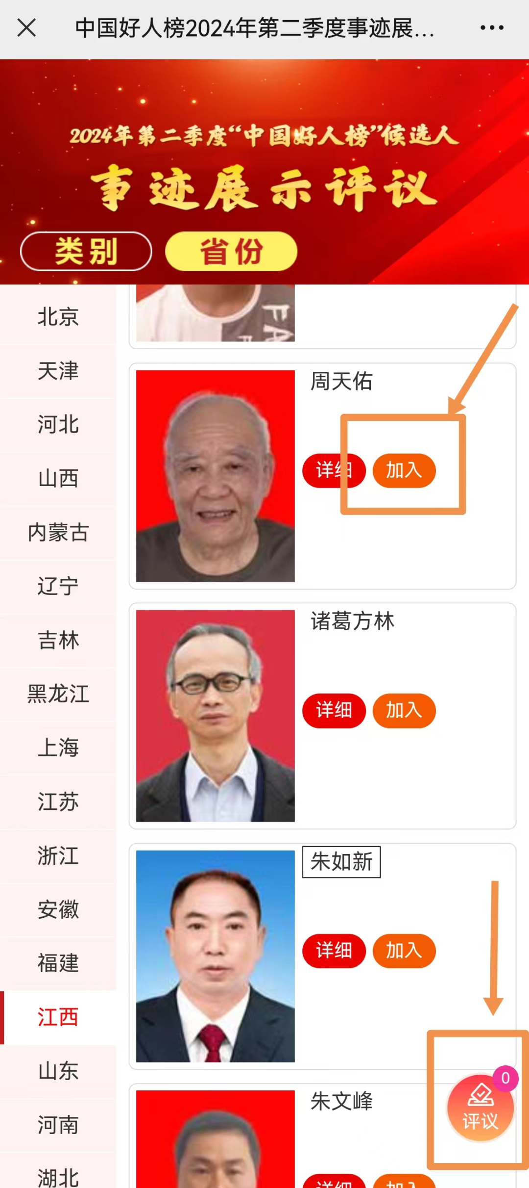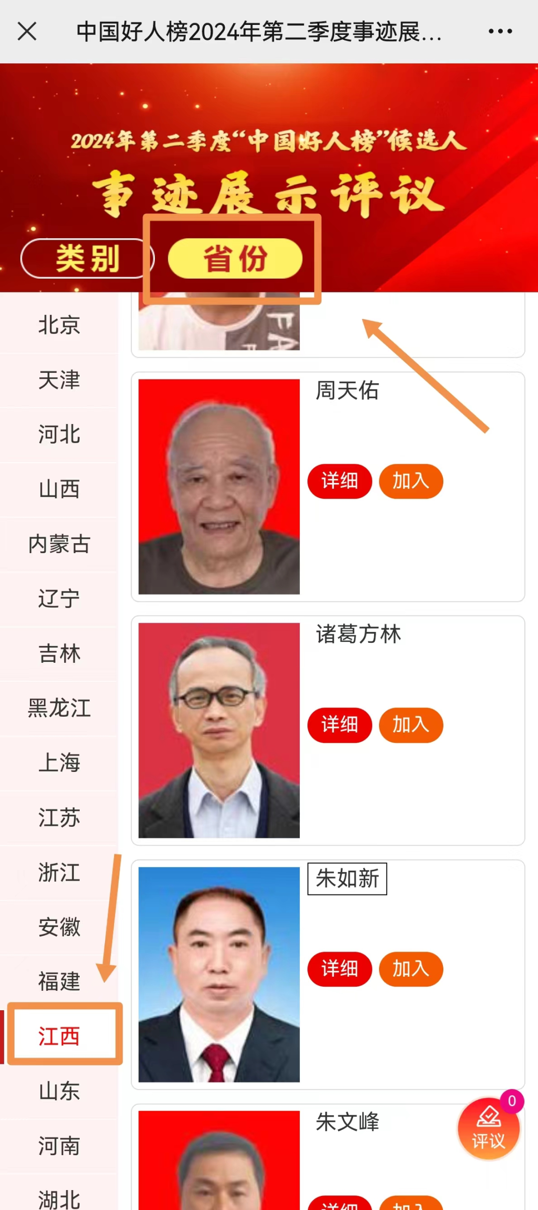 参加网上“我推荐我评议身边好人”活动,学习身边好人,激发向上向善、感恩奋进力量。经过基层干部群众、各地文明办和相关单位推荐,2024年第二季度“中国好人榜”候选人即将进行事迹展示评议,时间从即日起持续至7月15日。