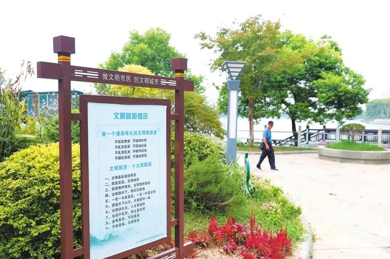 中秋节将近,持续的高温天气在一场秋雨过后得以缓解,外出游玩的人逐渐多了起来。在南湖公园景区,不少游客兴致勃勃地来此游玩赏景,散散步、拍拍照,十分惬意。在整个游玩过程中,游客们始终把文明记在心中、落实在行动中,爱护景区的一花一草、不随意折枝,拍照时不我行我素、尽量不影响其他游客,果皮、包装袋等自觉丢入垃圾箱……景区内风景怡人,游客的文明表现也让自己成为美丽风景的一部分。 为营造文明、安全的旅游环境,景区在很多显眼的位置都设置了温馨提示牌,号召大家做一个谦恭有礼的文明旅游者。“平安是福,文明是金”“文明游天下,快乐你我他”“出游讲礼仪,入乡要随俗”,朗朗上口的提醒语随处可见,游客的文明行为也无处不在。“不积跬步,无以至千里;不积小流,无以成江海。”每一个微小的文明举动都是一颗文明的种子,只要大家用实际行动“播撒”,文明便能处处开花结果。