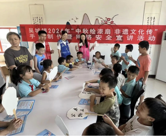 9月13日下午,永修县吴城镇新时代文明实践所开展“中秋绘漆扇 非遗文化传”手工制作暨网络安全宣讲活动。活动伊始,志愿者深入浅出、全方位地向大家阐述了网络安全的重要性。孩子们聚精会神地聆听,深刻认识到网络安全并非遥不可及,而是与我们每个人的生活息息相关。随后,志愿者给大家讲解了有关中秋的有关习俗,并向孩子们详细讲解漆扇历史、制作工艺以及传承价值。在制作漆扇过程中,大家根据自己的喜好将彩漆滴入水中轻微搅拌后,小心翼翼地放入扇子,手中的扇子生成丰富多彩的图案。
