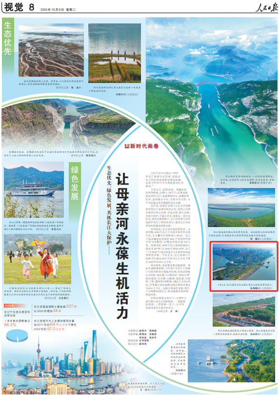 10月8日,《人民日报》8版“新时代画卷”栏目稿件《让母亲河永葆生机活力》,配发图片报道长江国家文化公园江西九江城区段景色怡人。