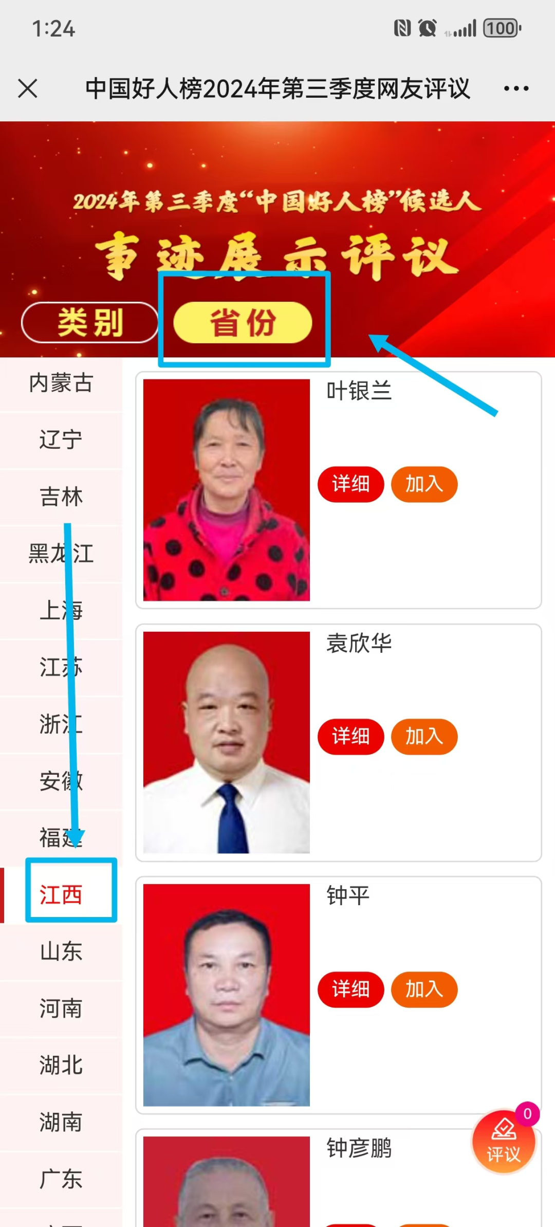 @九江人,2024年第三季度“中国好人榜”事迹展示评议开始啦,请您评议九江候选人!