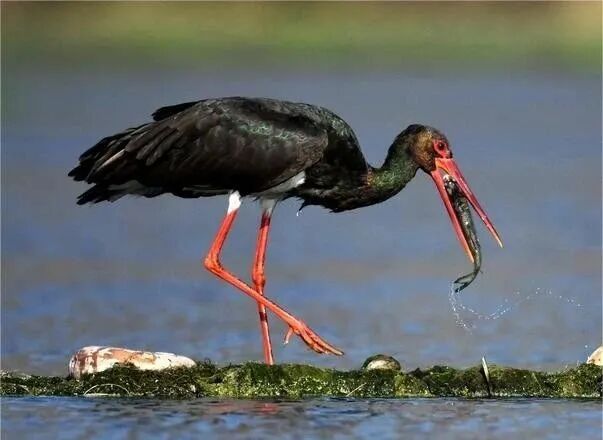 黑鹳是一种体态优美,体色鲜明,活动敏捷,性情机警的大型涉禽,多在悬崖峭壁的凹处石沿或浅洞处筑巢;鲜红色的嘴长而直,腿较长,呈鲜红色。黑鹳成年后声带退化,不会发出叫声,但能上下嘴快速叩击发出“嗒嗒”声。