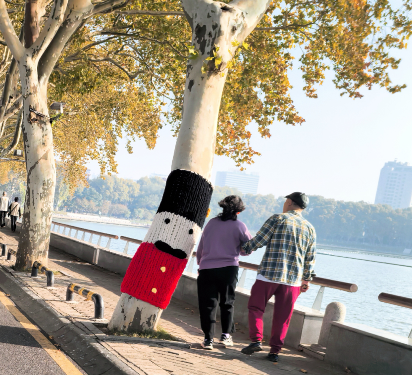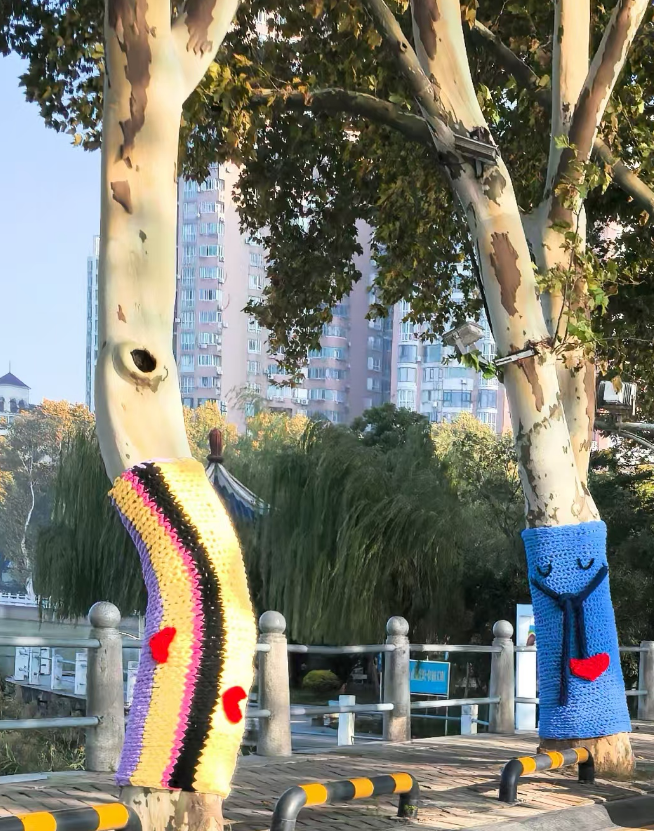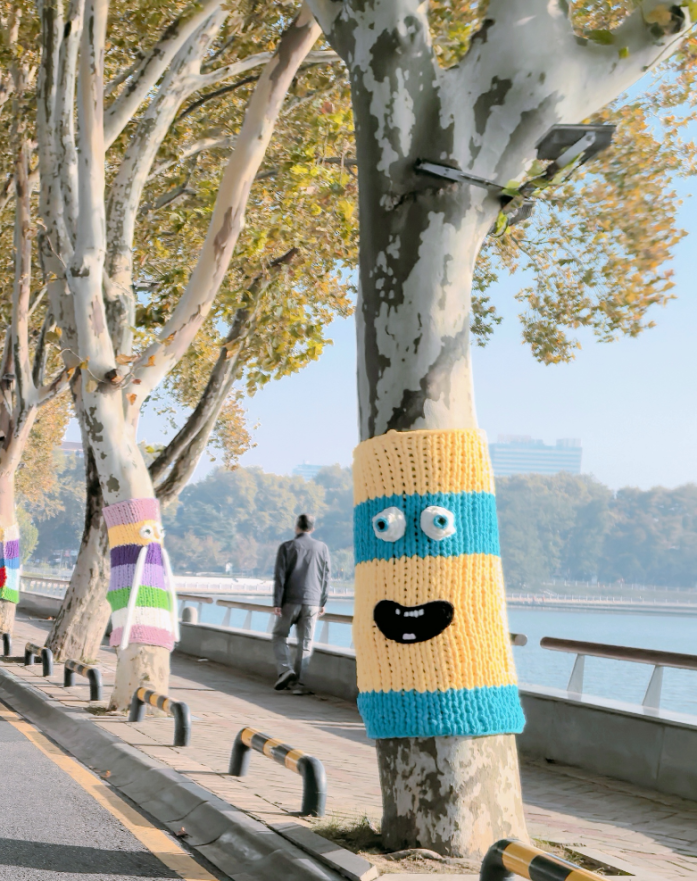 "树树我呀,也有过冬的毛衣穿了!”