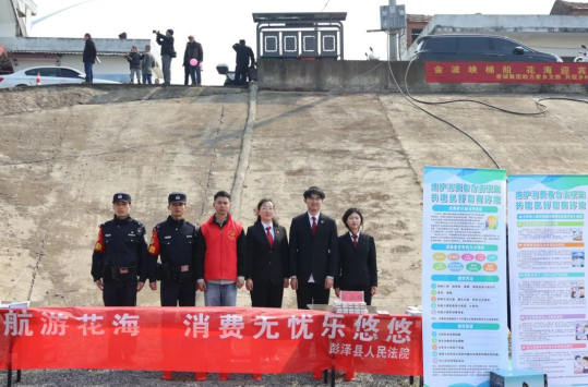 3月16日,为进一步宣传消费者权益保护理念,助力本地旅游经济高质量发展。彭泽县人民法院在“青山好处惟彭泽”第十一届“江中花海 魅力棉船”油菜花旅游活动开幕式会场创新开展“法治护航游花海 消费无忧乐悠悠”主题宣传活动。