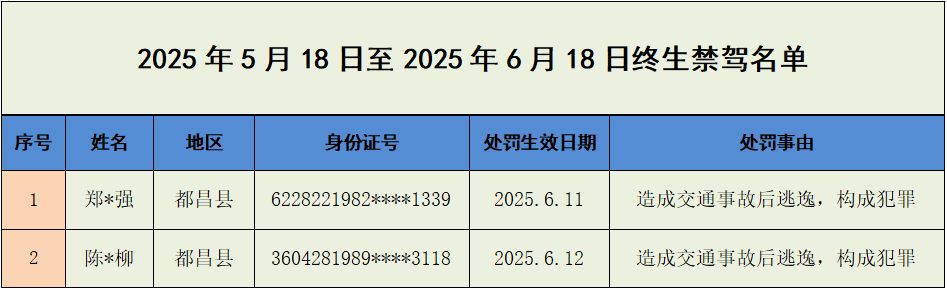 终生禁驾名单
