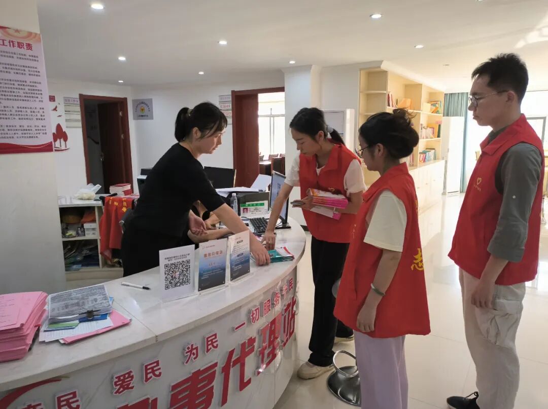 庐山市气象局志愿者到迎春桥社区服务中心发放科普宣传材料(黄鑫 摄)