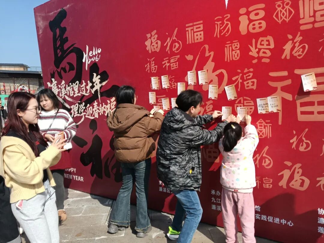 新春至,年味浓。2月14日,由濂溪区文广旅局主办,九江市周敦颐纪念馆、濂溪区新时代文明实践中心承办的“我在博物馆里过大年”文明实践活动“濂溪馆里过大年 理学迎春纳福来”在九江市周敦颐纪念馆内热闹开启。活动包含五大主题板块,吸引众多市民游客参与。祈福区里,大家书写心愿粘贴祈福墙,寄托美好期许;打卡区中,《爱莲说》背诵、集章赢礼互动热烈;对联创作区,8位书法家挥毫送春联福字,传递新春祝福;颁奖与画展专区,展示儿童画优秀作品并为获奖小选手颁奖,浸润文脉。