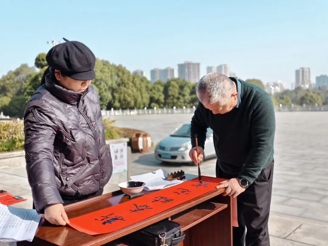 十几位九江本地书法大师现场挥毫泼墨,一副副笔力遒劲、寓意吉祥的春联,为市民送上新春的美好祝福。