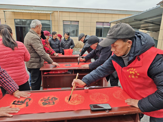 近日,德安县吴山镇新时代文明实践所联合蔡河村新时代文明实践站开展“翰墨迎春·送福惠民”活动,邀请县书法协会老师现场为村民免费书写春联,送上新春祝福。